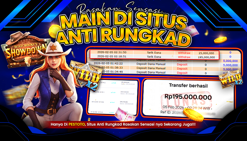 SELAMAT DATANG DI PESTOTO BANDAR SLOT ONLINE, LIVE CASINO, TOGEL ONLINE TERPERCAYA DI INDONESIA DENGAN BONUS TANPA BATAS SETIAP HARI - LAYANAN TRANSAKSI BANK ONLINE 24 JAM. MINIMAL DEPOSIT IDR 5.000,- DAN WITHDRAW IDR 25.000,-